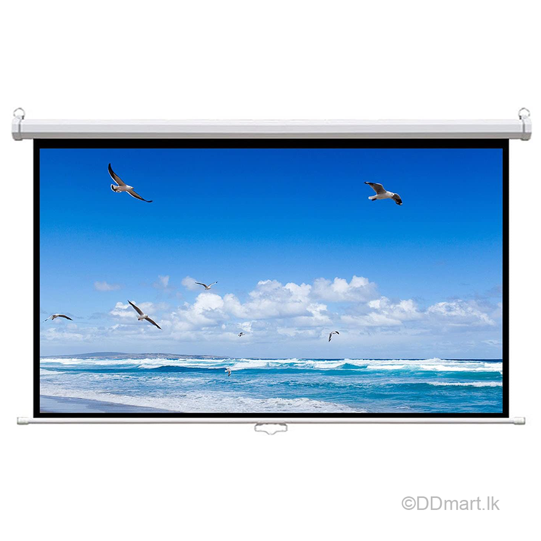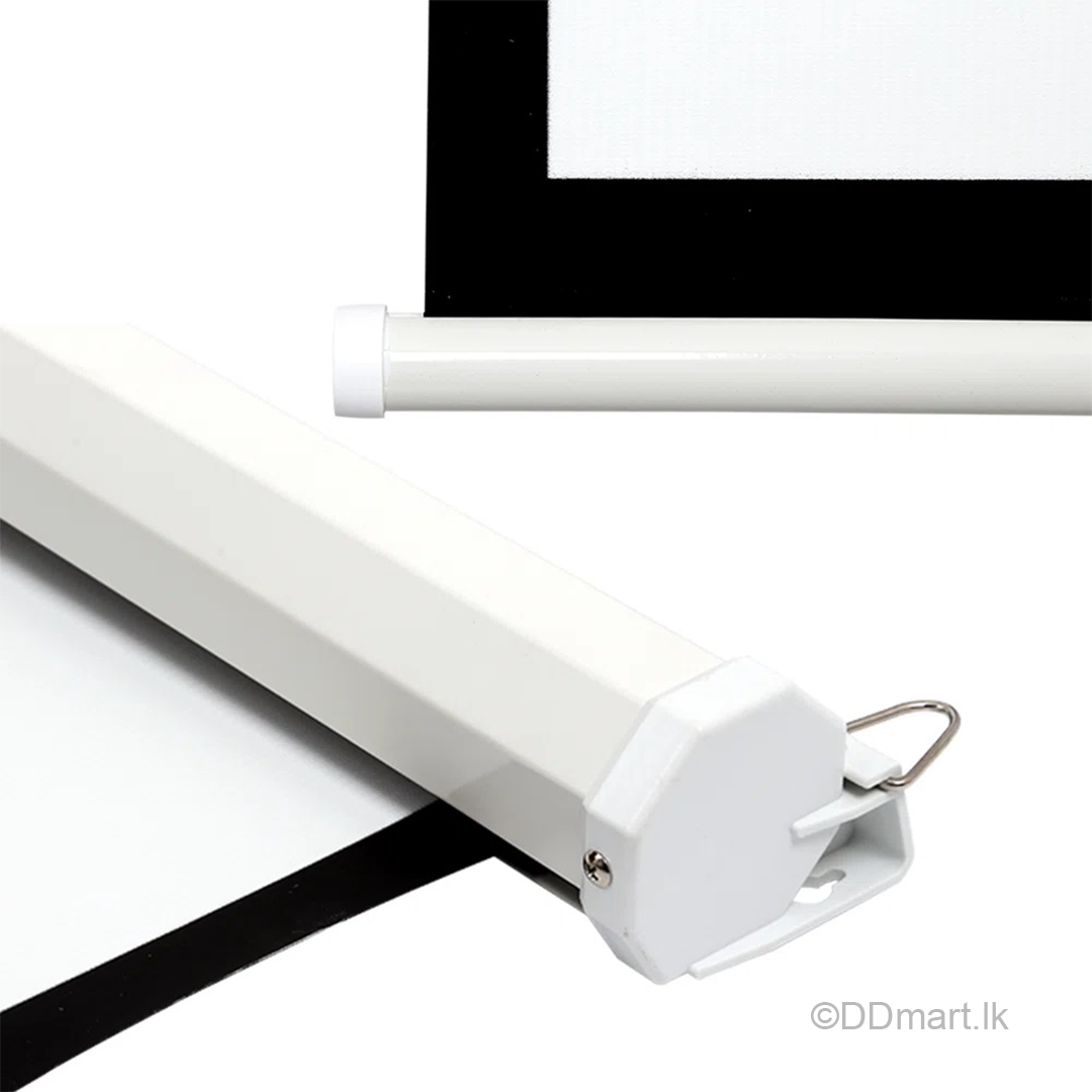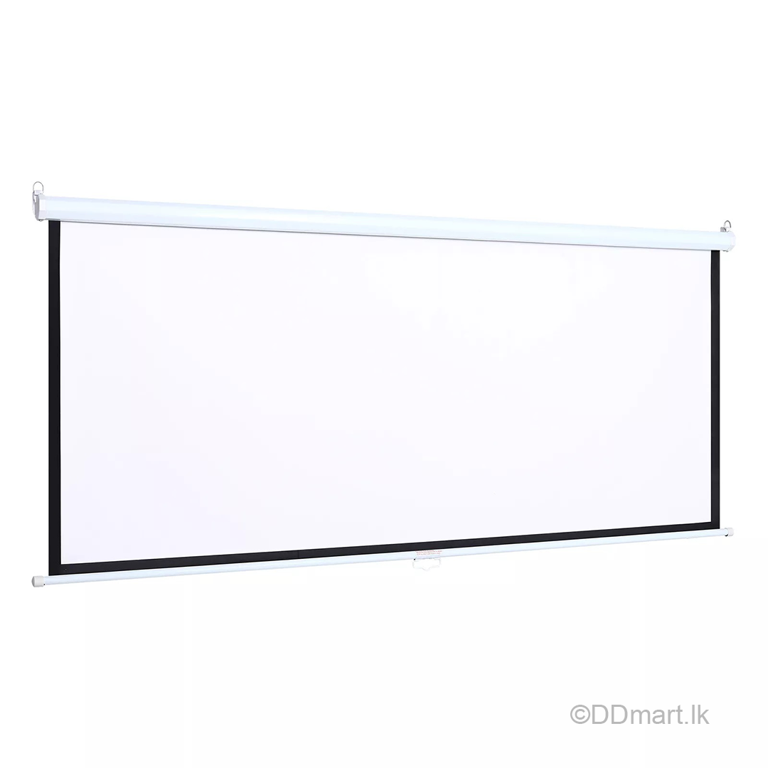 Designed with a smooth, retractable mechanism, the manual pull-down feature allows you to adjust the screen height effortlessly, while the black borders enhance focus and contrast. The heavy-duty metal casing adds durability and enables both wall and ceiling installation, making it versatile for different spaces.