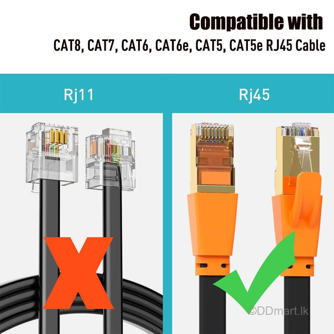 - Compatibility: CAT5, CAT5e, CAT6, and CAT6A Ethernet cables