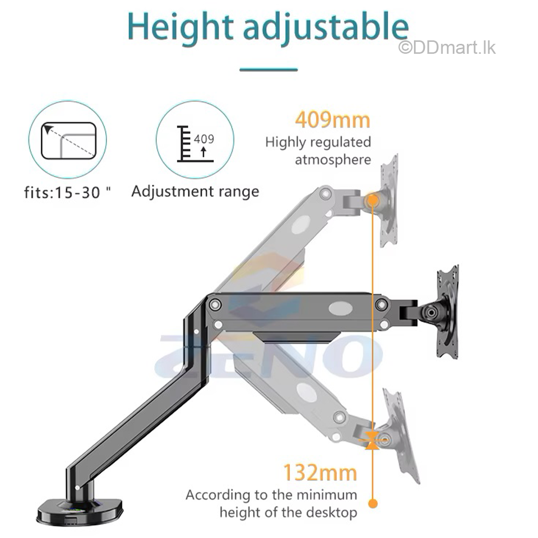 The quick installation mechanism allows for hassle-free setup, while the full-motion capabilities let you easily adjust height, swivel, tilt, and rotation. Whether you need a perfect viewing angle for work, gaming, or multimedia consumption, the ZENO M8 adapts effortlessly to your needs.