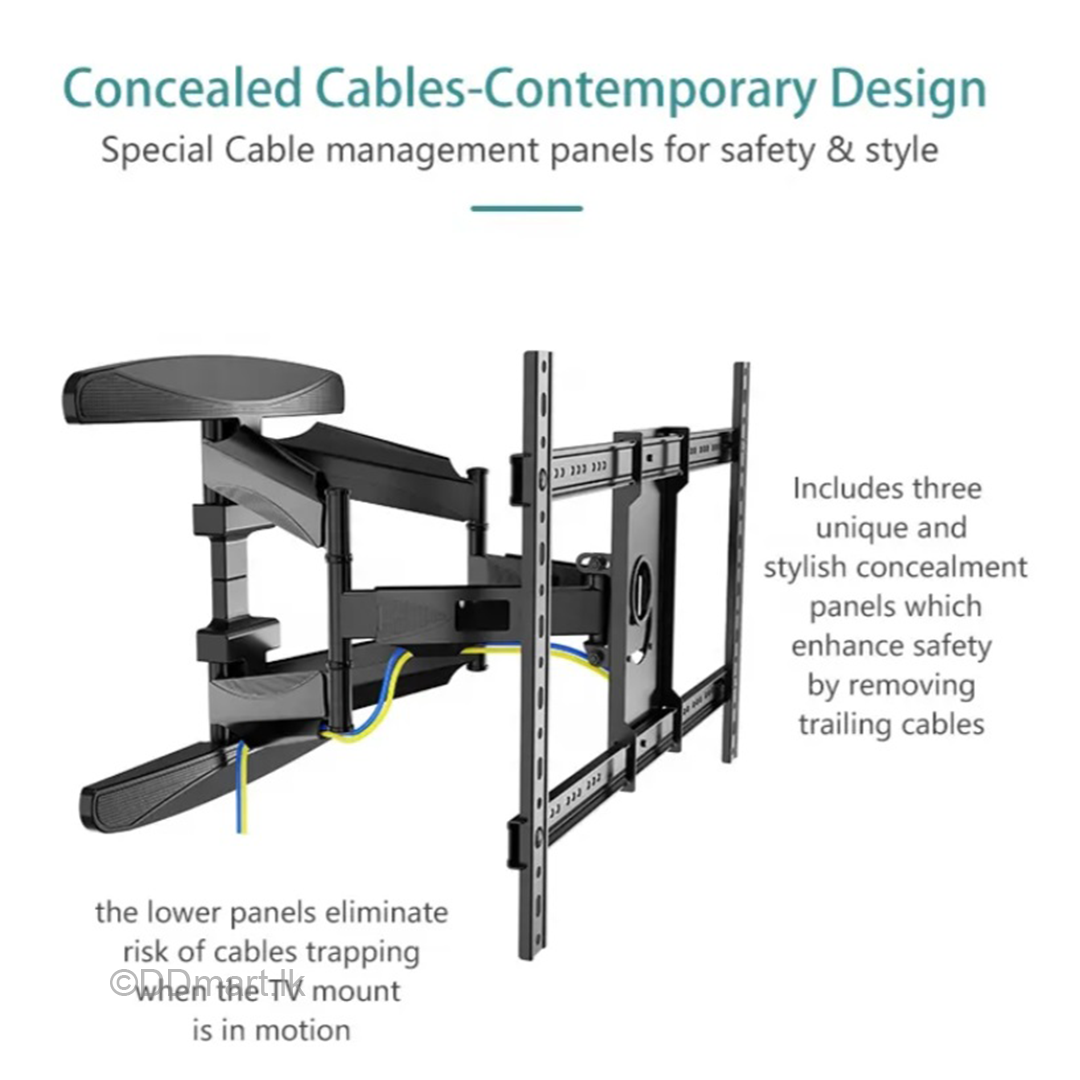 The ZENO P700 Adjustable Double Arms TV Wall Mount Bracket is designed to securely support large TVs from 40 to 85 inches with ease. Constructed from high-strength materials, this heavy-duty bracket can hold weights up to 50 kg (110 lbs) and offers ultimate stability, even for the largest screens. The full-motion design allows for seamless tilt and swivel adjustments, enabling you to find the perfect viewing angle for any room setup.